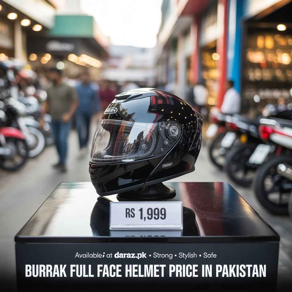 Burrak full face helmet Price in Pakistan is available on Daraz.pk at an affordable price of Rs. 1,999. With its stylish design, strong build, and sun visor feature, it offers great value for money — ensuring both safety and comfort for daily motorcycle riders in Pakistan.